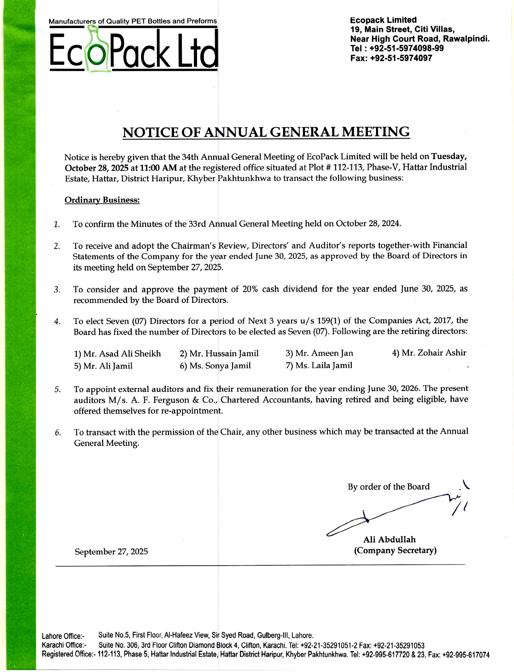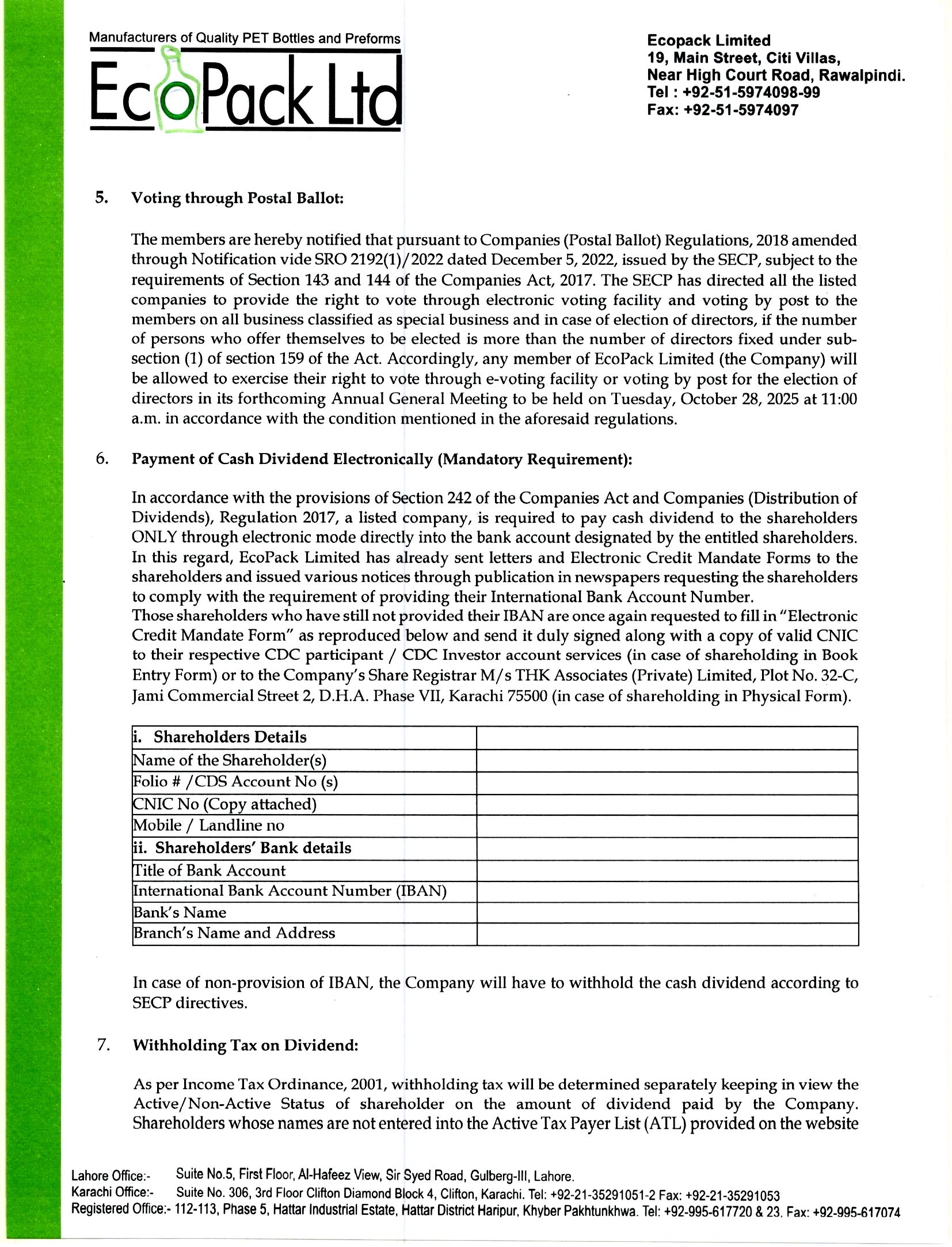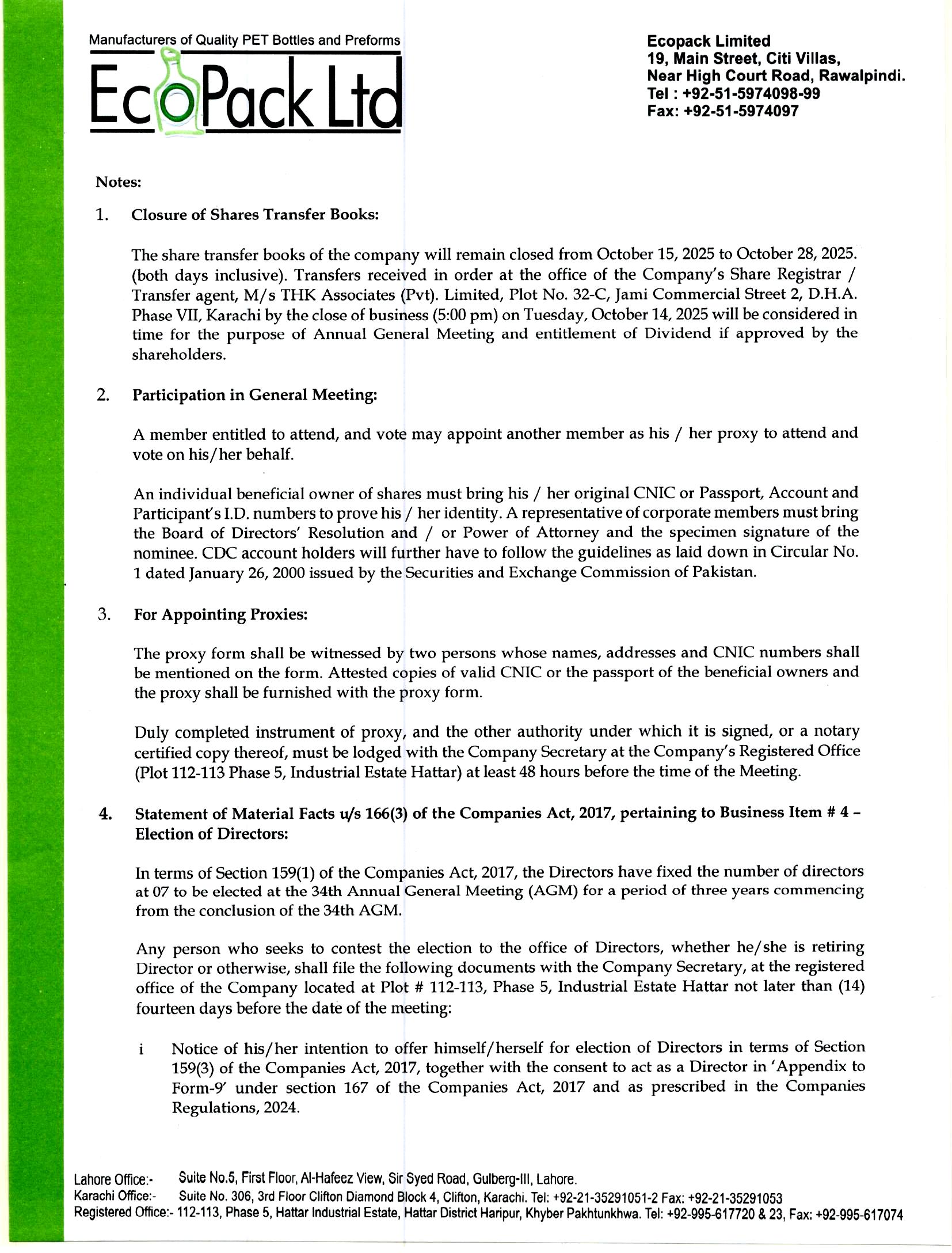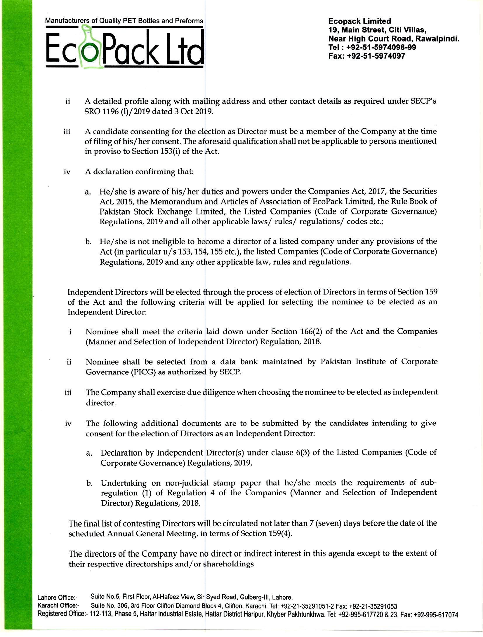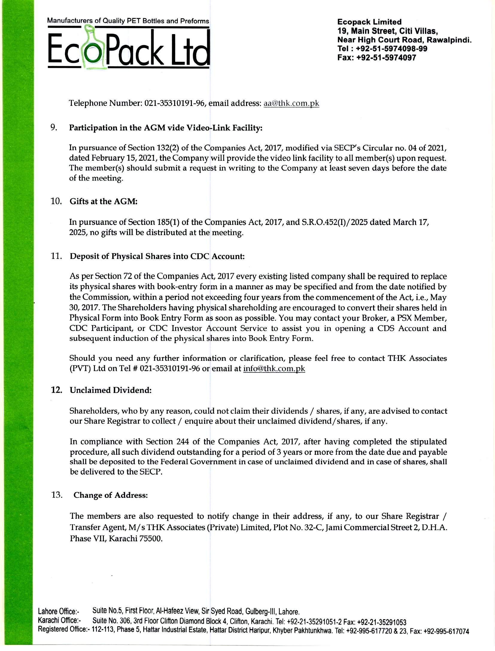 | Security Symbol : ECOP | ECOPACK LIMITED | |